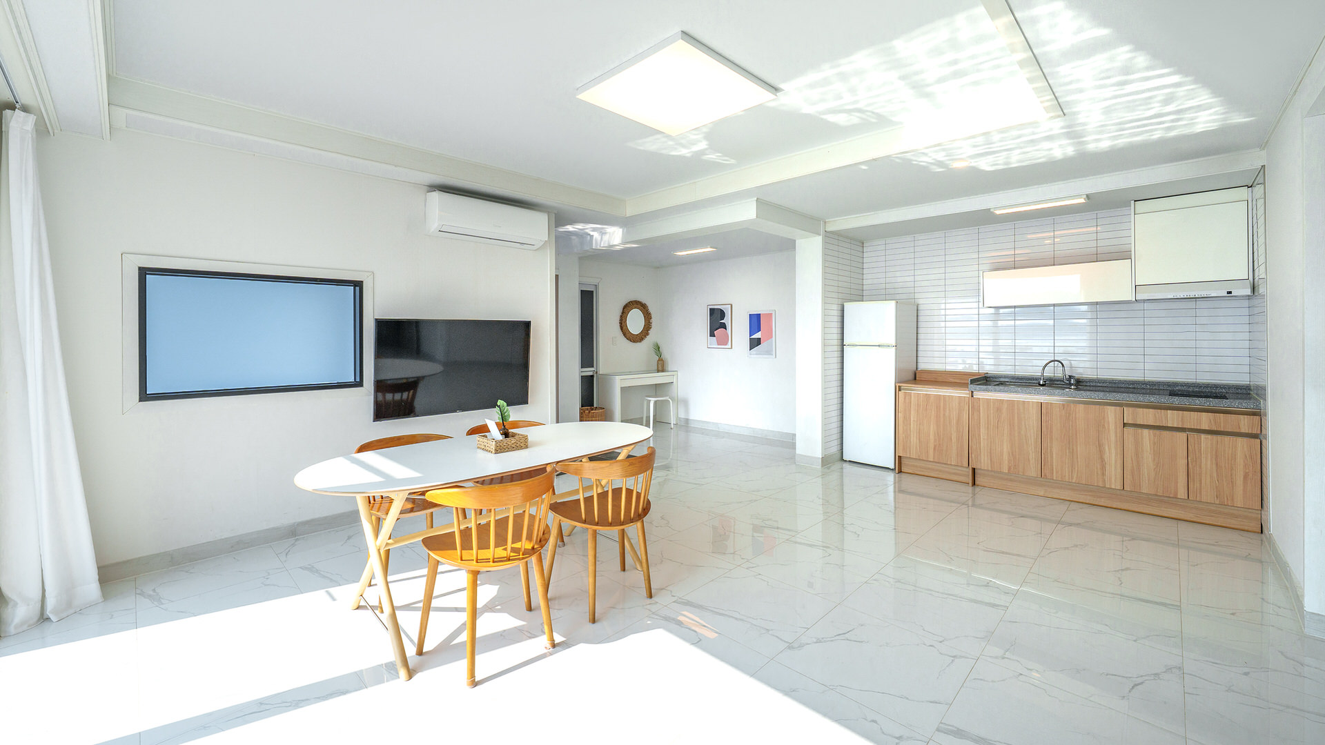 - 집기품목 : 욕실용품, 남녀공용, TV, 금연, 냉장고, 에어컨, 전기밥솥, 취사시설/도구, 커피포트, 개별수영장, 전자레인지, 침대방, 식탁, 소화기, 화재 감지기, 바다전망